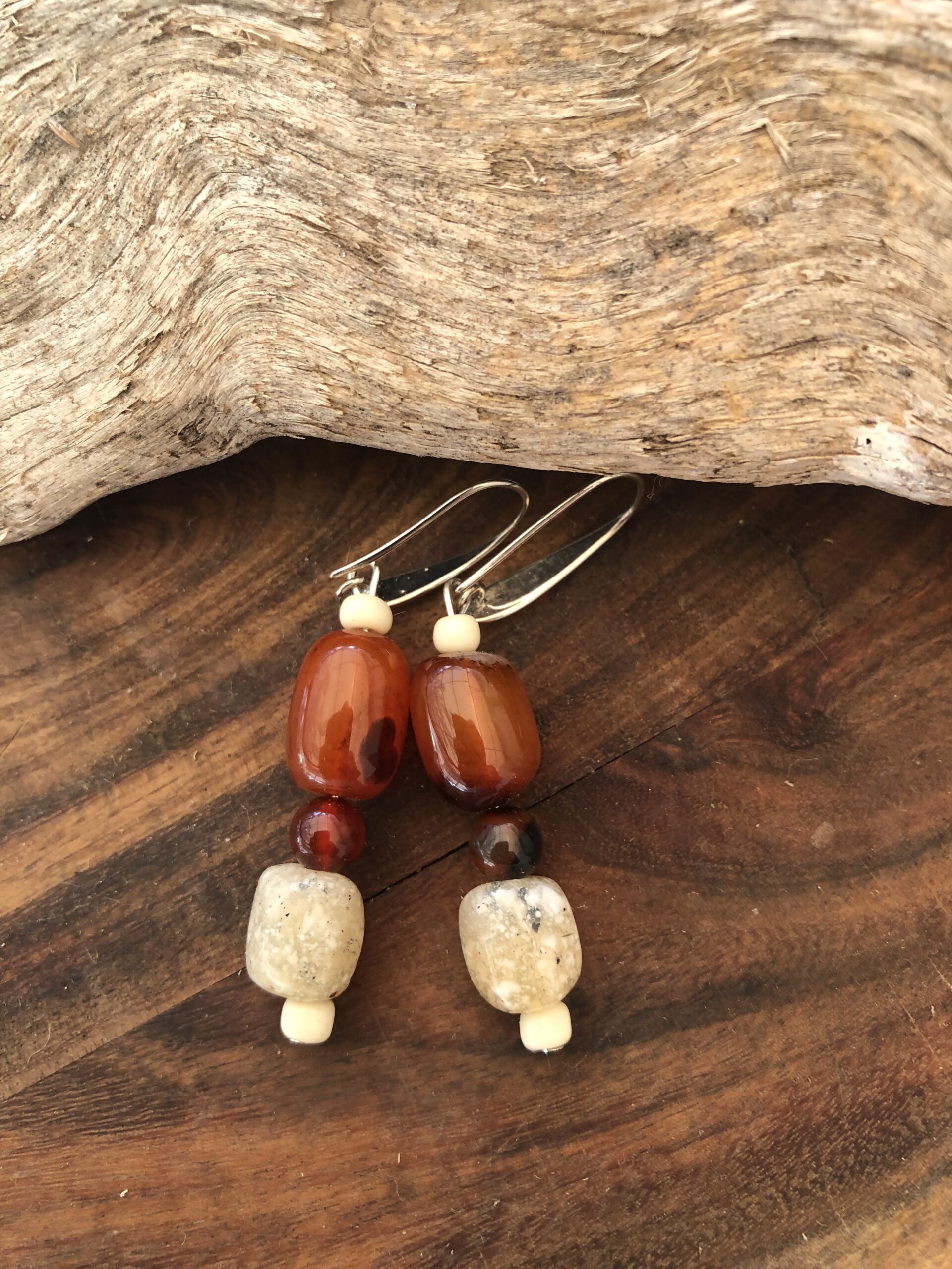 Beautiful amber agate with unusual pale flecked beads, 4cm drop